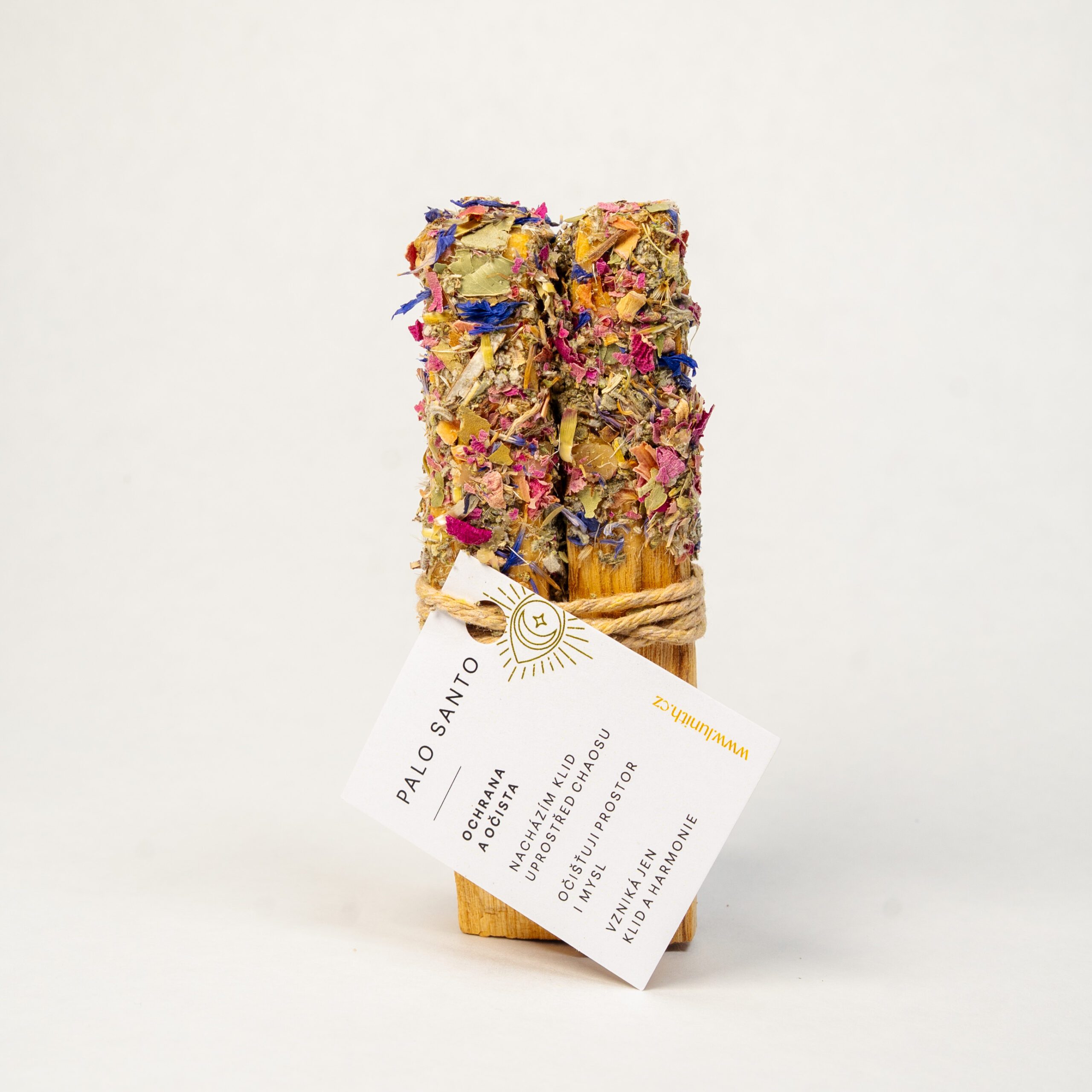 Tato kombinace šalvěje, myrty, pivoňky a chrpy posiluje schopnost Palo Santa uvolnit prostor od nahromaděné negativity. Šalvěj působí silně očistně, myrta chrání a harmonizuje, pivoňka zklidňuje a chrpa navozuje rovnováhu. Vhodné pro práci po těžkém dni, před meditací, nebo jako součást očistného rituálu.