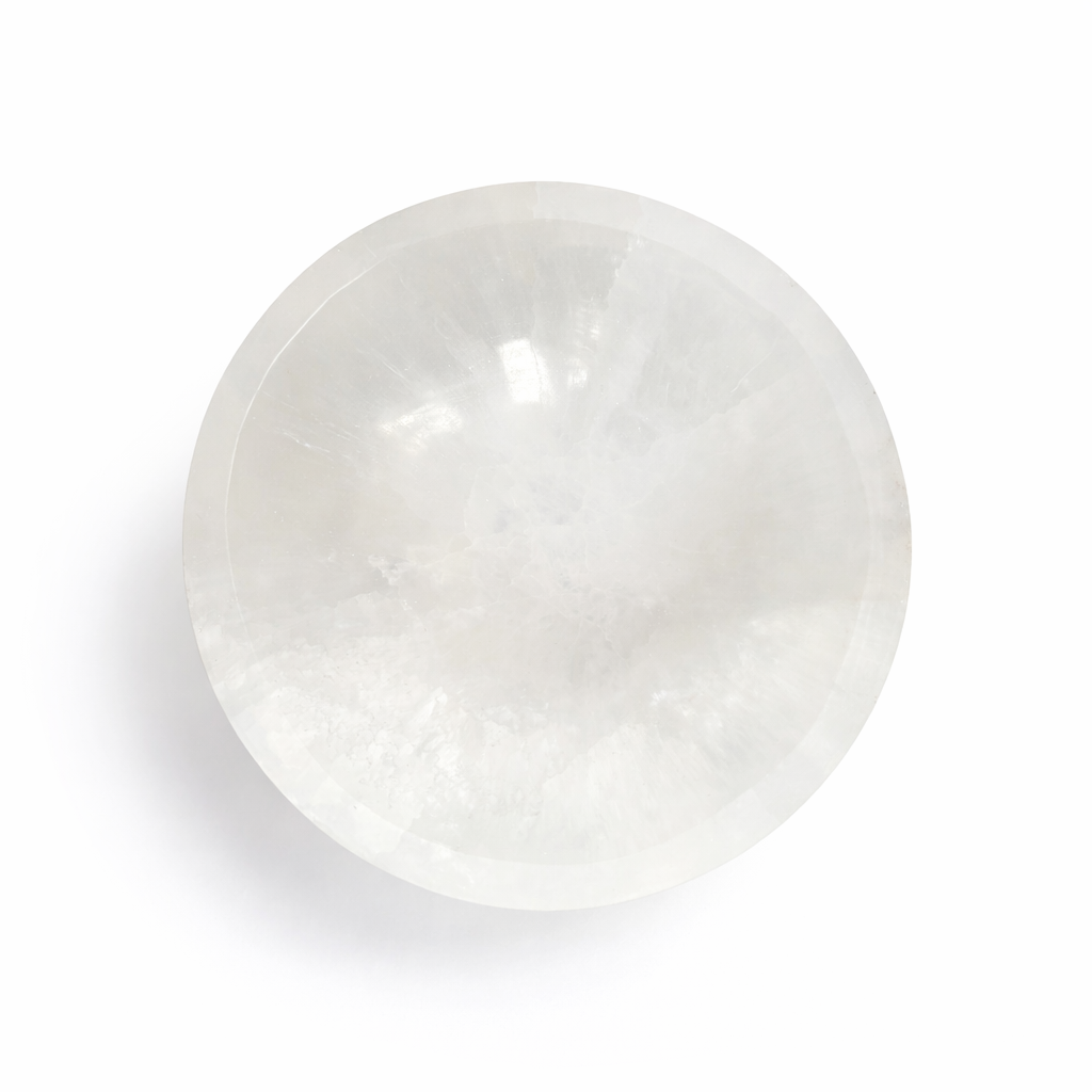 Každá selenitová miska je originál – s přirozenou kresbou, strukturou a stopami světla, které selenit nese. Jemné linie a průsvitnost jsou přirozenou součástí tohoto kamene a připomínají jeho spojení s klidem a vyššími rovinami vnímání.
